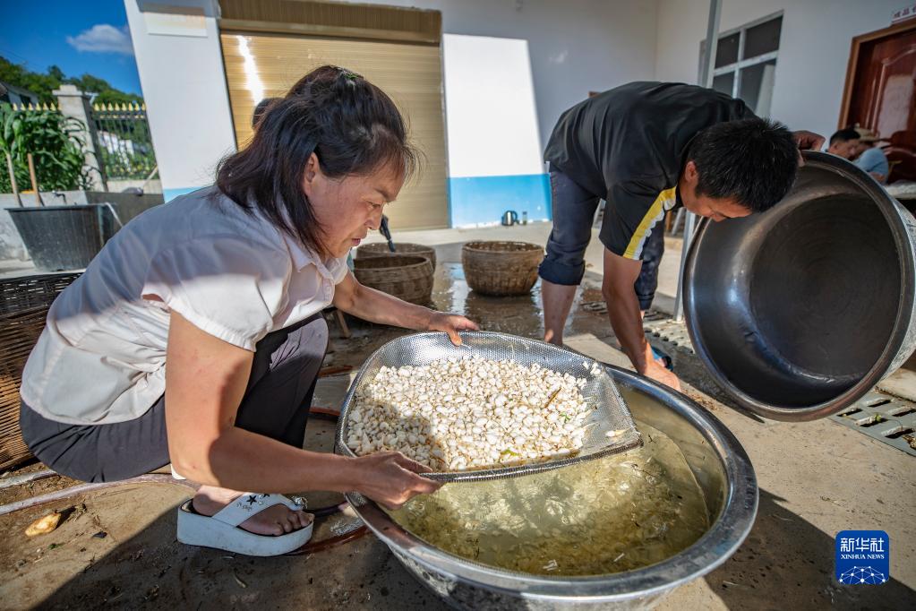 7月14日,在重慶市巫溪縣蘭英鄉西安村,村民在清洗貝母。