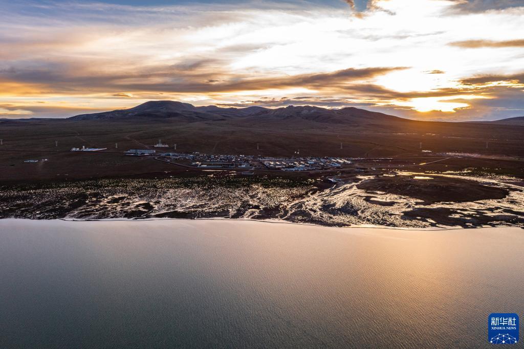 日落時(shí)分的雙湖縣多瑪鄉(7月14日攝,無(wú)人機照片)。