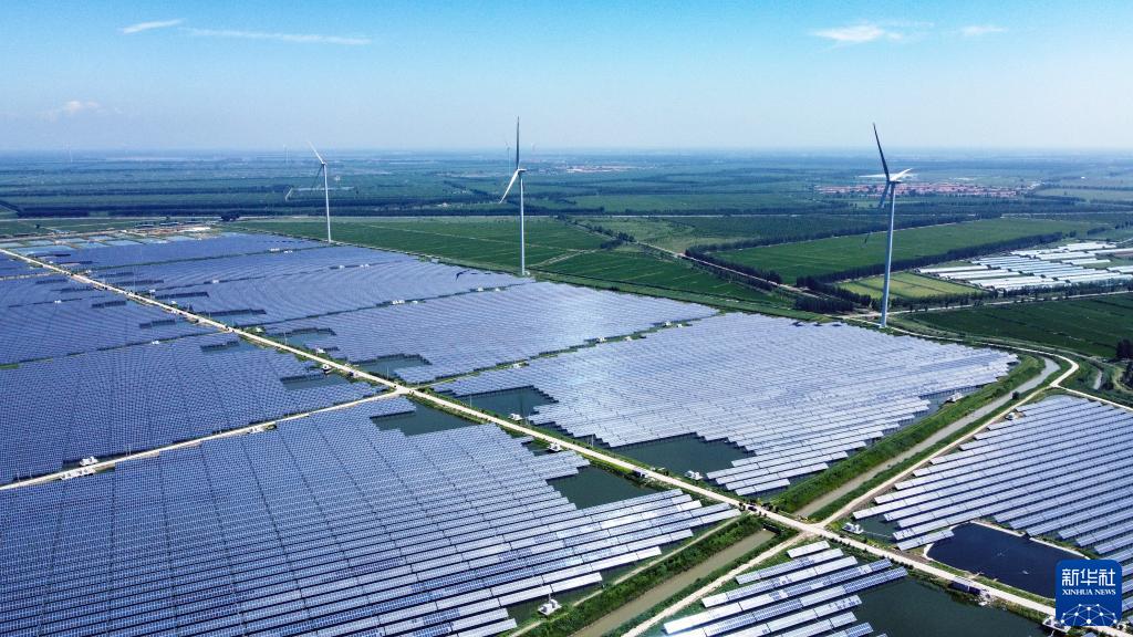 這是在天津市寧河區寧河鎮大月河村拍攝的110千伏大月河光伏電站(7月18日攝,無(wú)人機照片)。