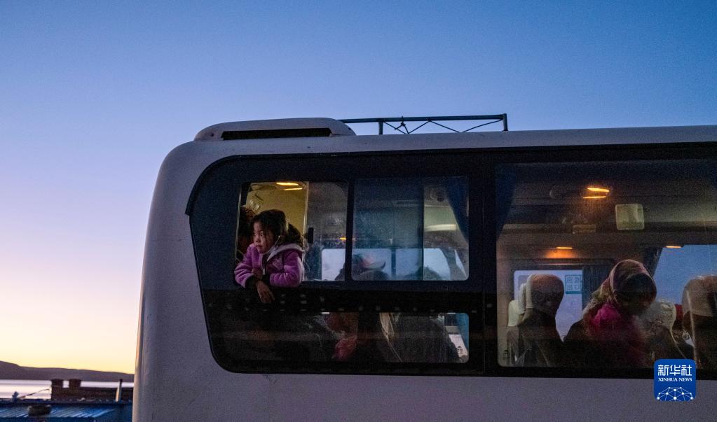 搬遷群眾搭乘大巴,準備前往森布日安置點(diǎn)(7月19日攝)。