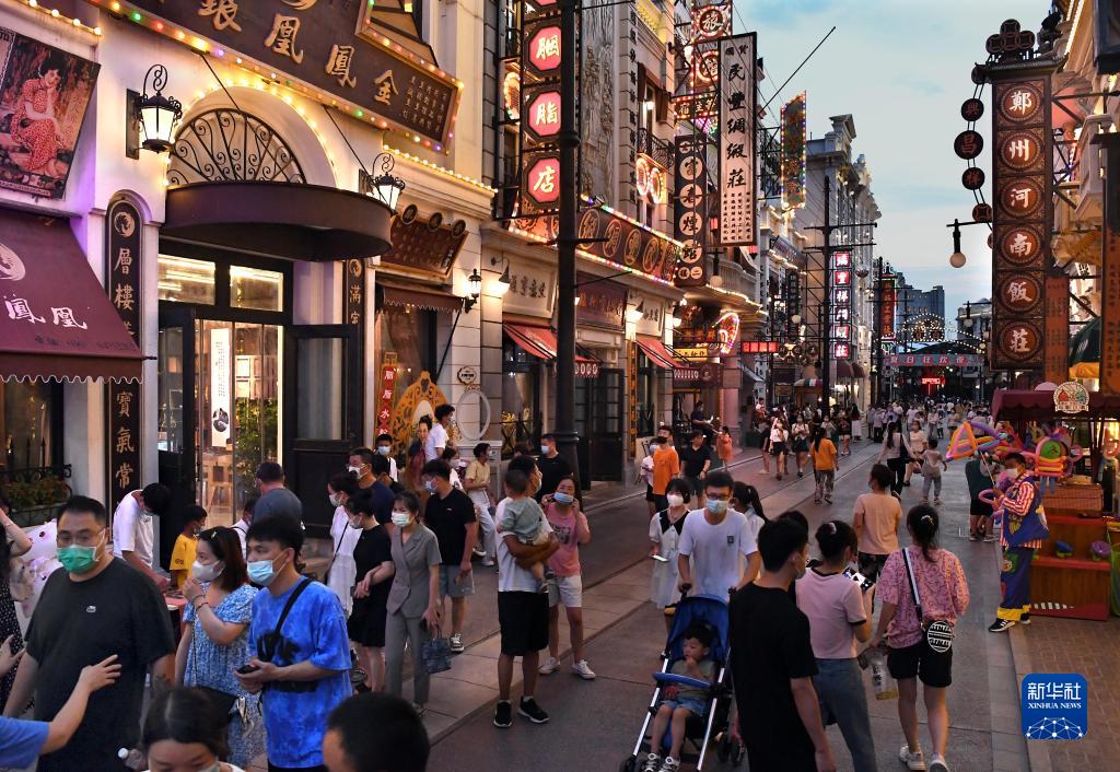 7月18日,游客在電影小鎮里參觀(guān)游玩。