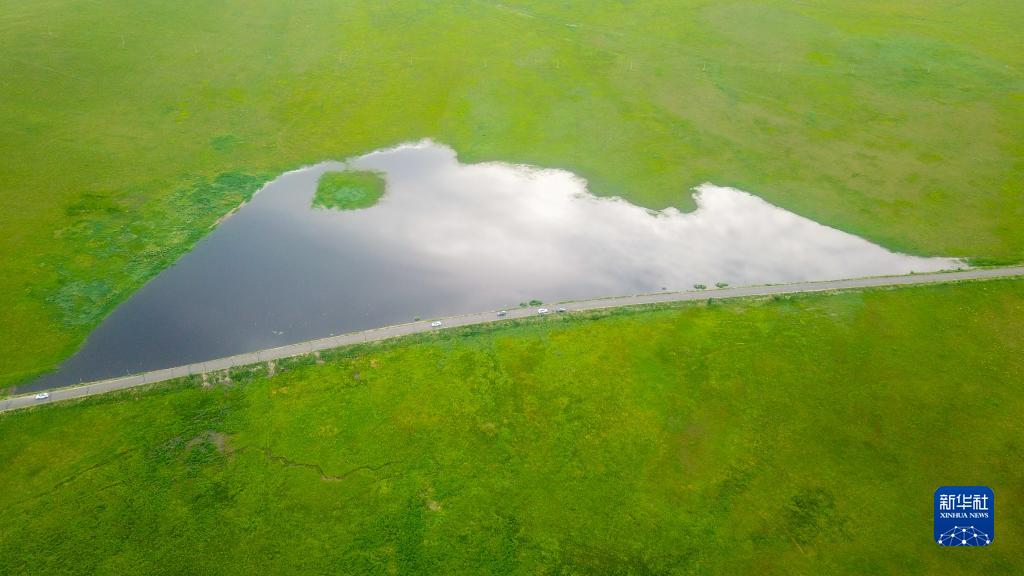 烏拉蓋草原上的湖泊(7月20日攝,無(wú)人機照片)。