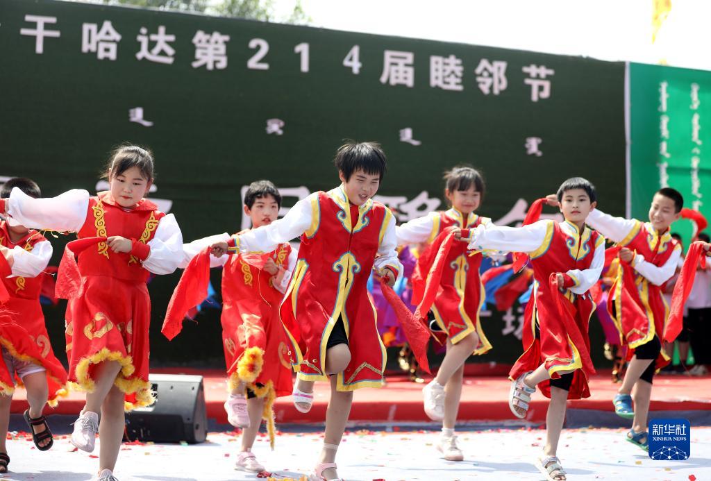7月26日,查干哈達村的小朋友在睦鄰節上表演舞蹈。