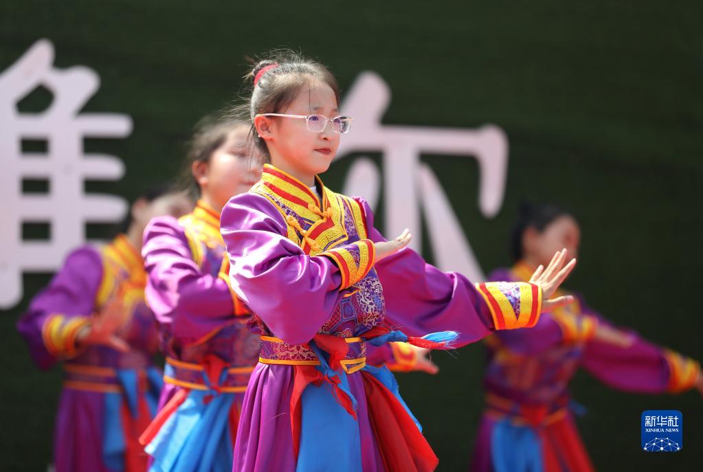 7月26日,查干哈達村的小朋友在睦鄰節上表演舞蹈。