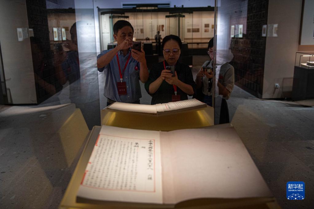 7月30日,觀(guān)眾在中國國家版本館杭州分館參觀(guān)展品。