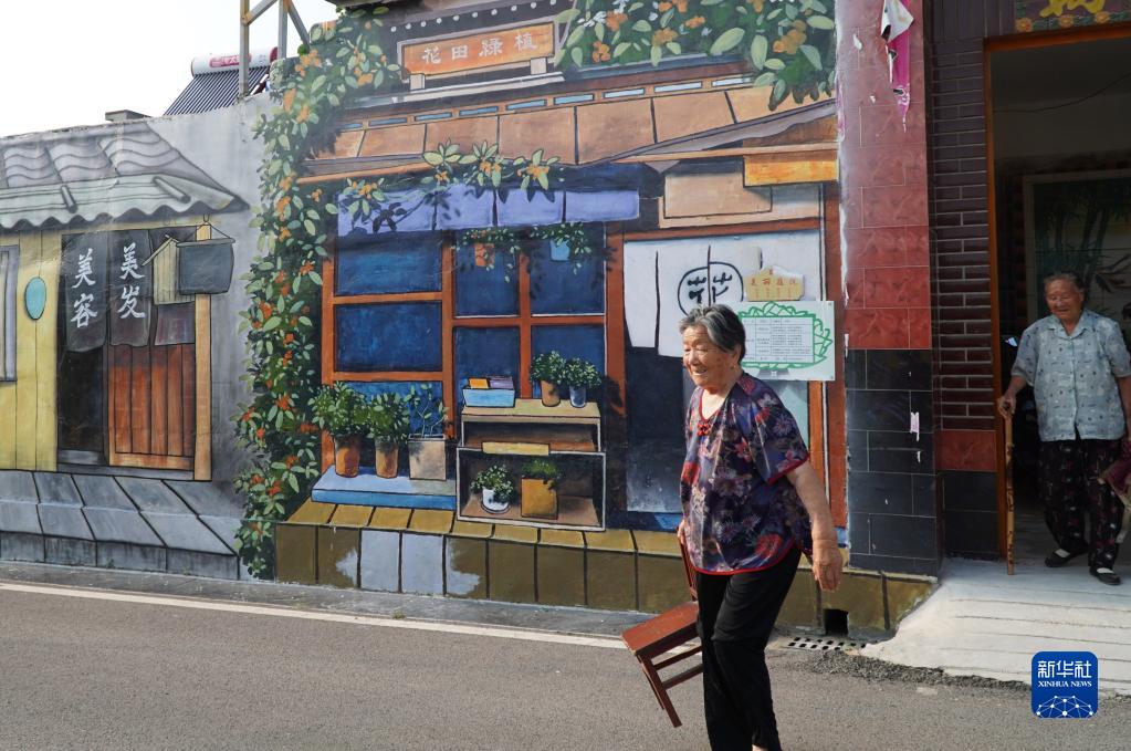 8月3日,北張村村民從墻繪藝術(shù)畫(huà)前經(jīng)過(guò)。