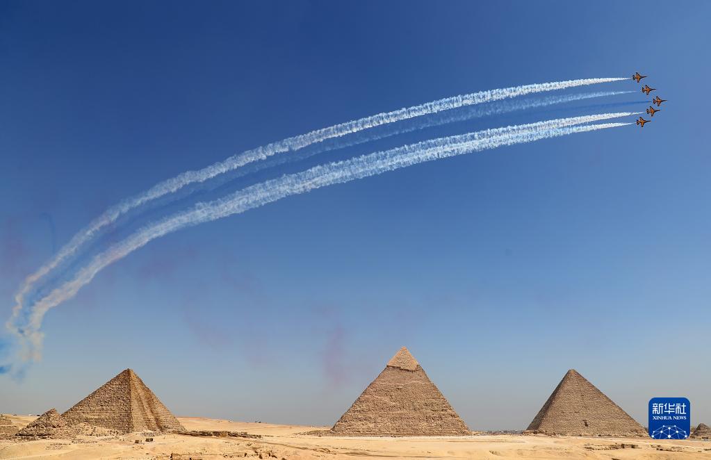 當日,埃及2022金字塔航空表演在吉薩金字塔景區舉行,來(lái)自埃及和韓國的多個(gè)飛行表演隊伍進(jìn)行了多項精彩的飛行表演。