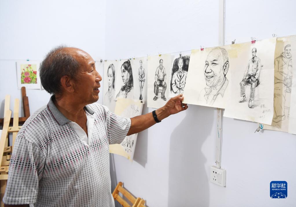 8月3日,在河南省洛陽(yáng)市嵩縣黃莊鄉三合村,村民張星立展示寫(xiě)生者為他畫(huà)的肖像畫(huà)。