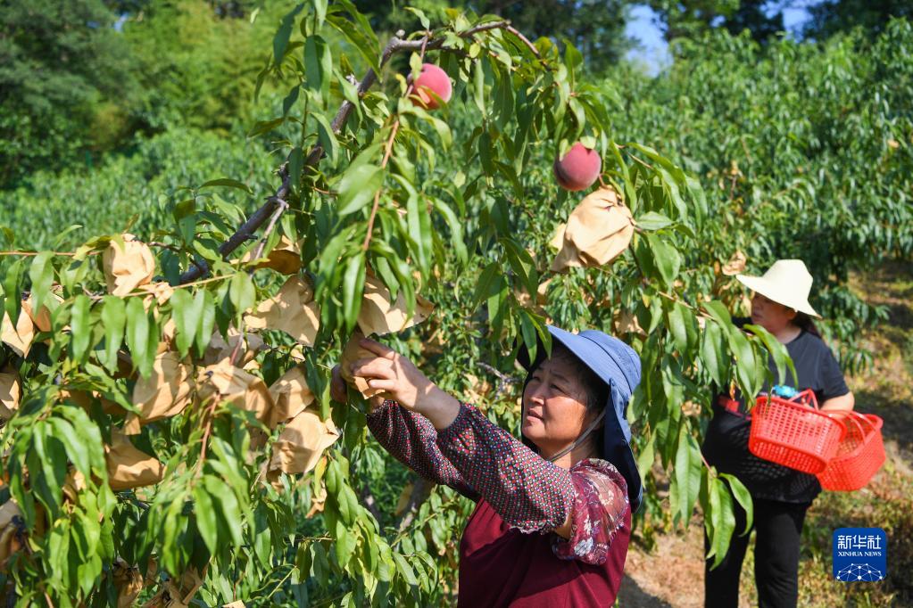 8月3日,重慶市萬(wàn)州區恒合土家族鄉鴻鳳村村民在采摘桃子。