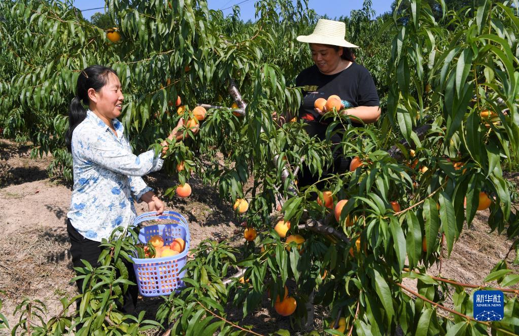 8月3日,重慶市萬(wàn)州區恒合土家族鄉鴻鳳村村民在采摘桃子。