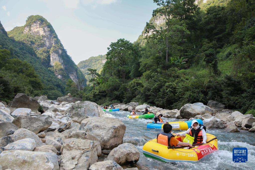 夏日時(shí)節,位于貴州省施秉縣的杉木河景區迎來(lái)大量喜愛(ài)漂流的游客,在欣賞優(yōu)美風(fēng)光的同時(shí),盡享夏日清涼。