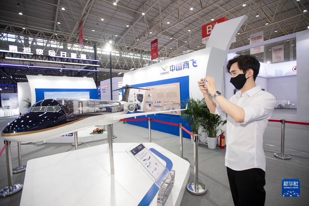 8月5日,觀(guān)眾在中國商飛展廳參觀(guān)。