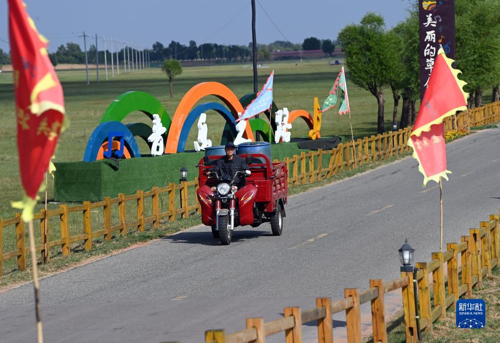 8月5日,村民行駛在爾林兔大草原“音樂(lè )之路”上。