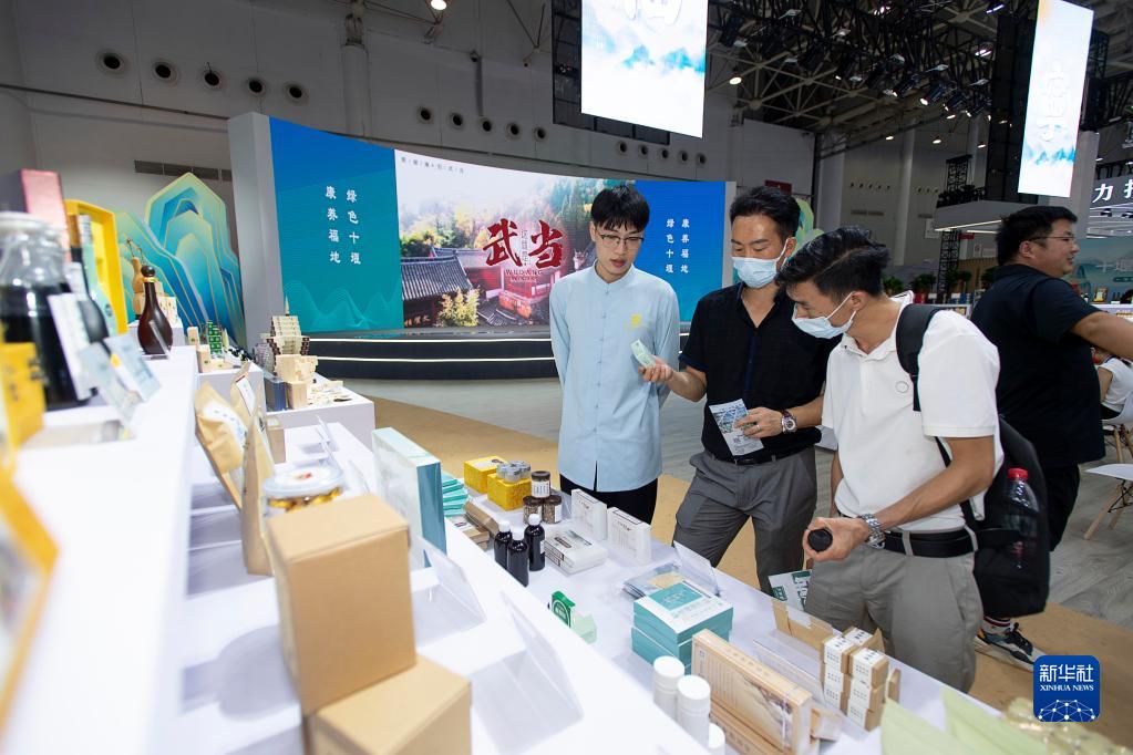 8月5日,在2022年世界大健康博覽會(huì )上,觀(guān)眾在湖北十堰展廳參觀(guān)。