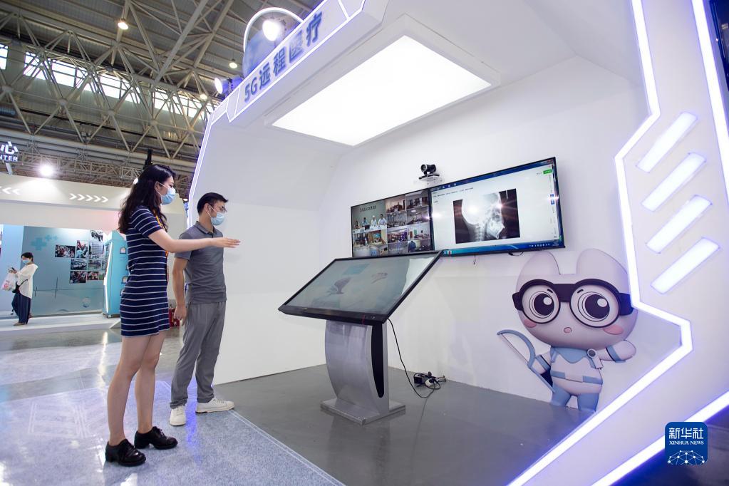 8月5日,在2022年世界大健康博覽會(huì )上,觀(guān)眾在武漢大學(xué)口腔醫院展廳了解5G遠程醫療。