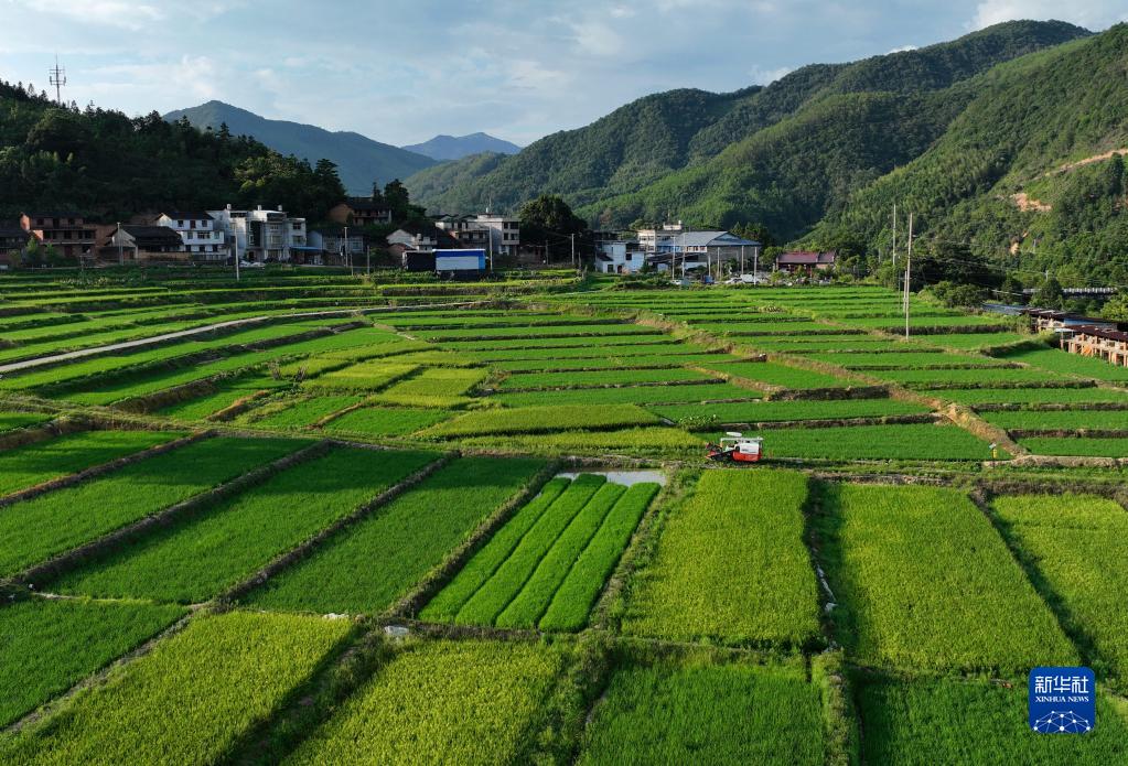 新華全媒+|大地“調色盤(pán)” 稻田夏收忙