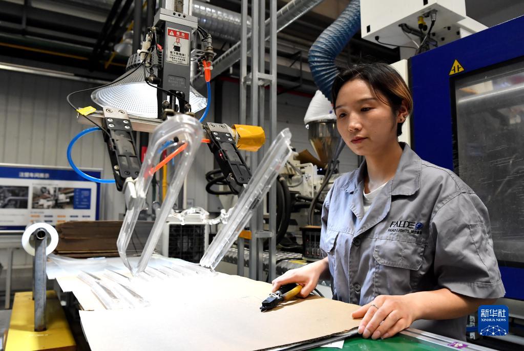 8月5日,在陜西泰德汽車(chē)空調有限公司生產(chǎn)車(chē)間內,工作人員在進(jìn)行車(chē)燈注塑作業(yè)。
