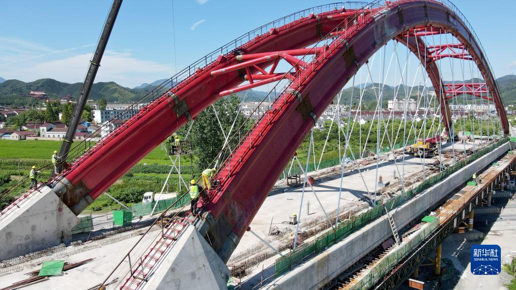 當日,由中鐵十一局施工的池(州)黃(山)鐵路墩上特大橋128米系桿拱主體工程完成施工,為后續工程施工提供保障。池黃鐵路全長(cháng)約125公里,設計時(shí)速350公里,是武(漢)杭(州)快速鐵路通道的重要組成部分。