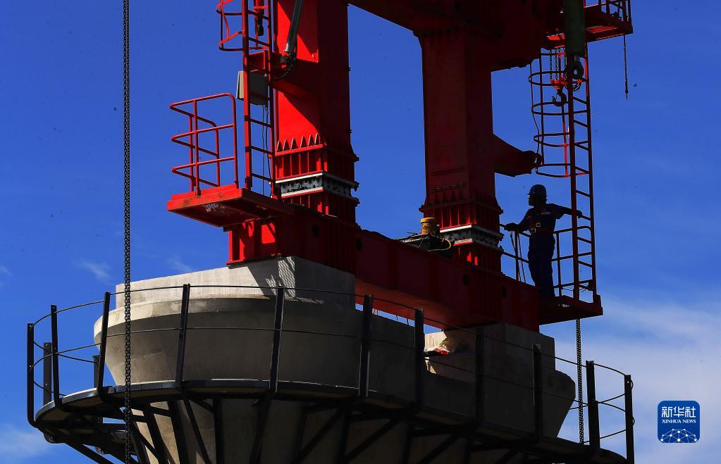 8月6日,中鐵九局工程技術(shù)人員在箱梁架設現場(chǎng)施工作業(yè)。
