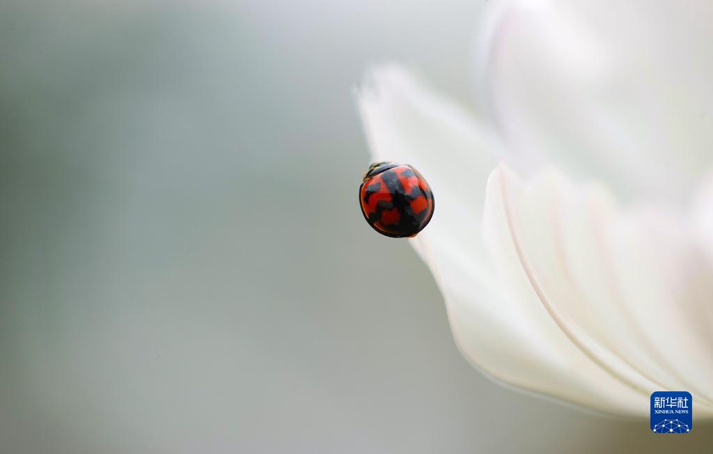 7月28日,在貴州省黔東南苗族侗族自治州丹寨縣郊外,一只瓢蟲(chóng)在花葉上爬行。