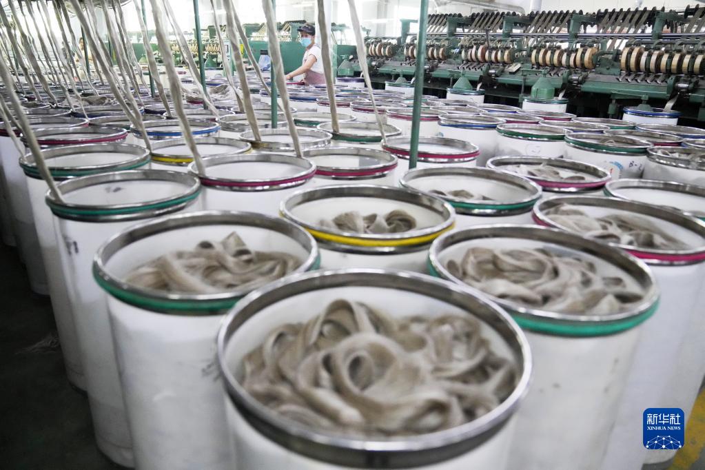 這是8月4日在穆棱經(jīng)濟開(kāi)發(fā)區黑龍江紅豆杉亞麻紡織有限公司車(chē)間拍攝的生產(chǎn)場(chǎng)景。