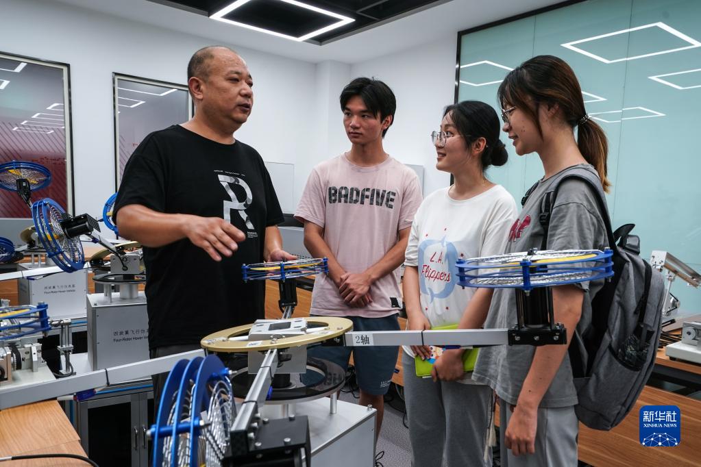 8月6日,常州固立高端裝備創(chuàng )新中心的工作人員向參加暑期機器人夏令營(yíng)的學(xué)生介紹四旋翼飛行仿真器。
