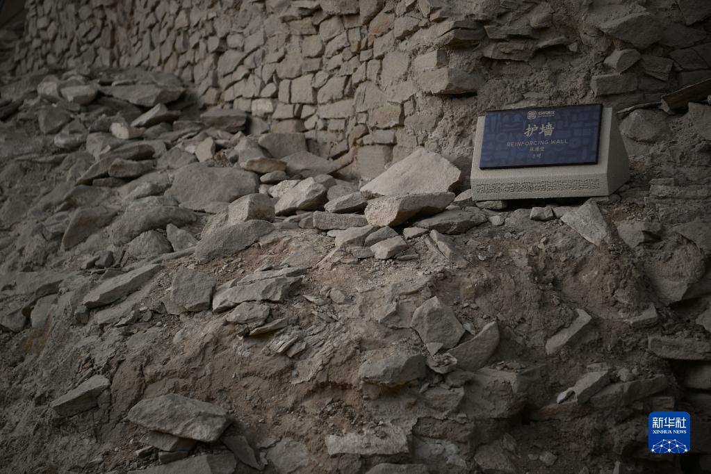 這是8月6日拍攝的陜西神木石峁遺址外城東門(mén)護墻。