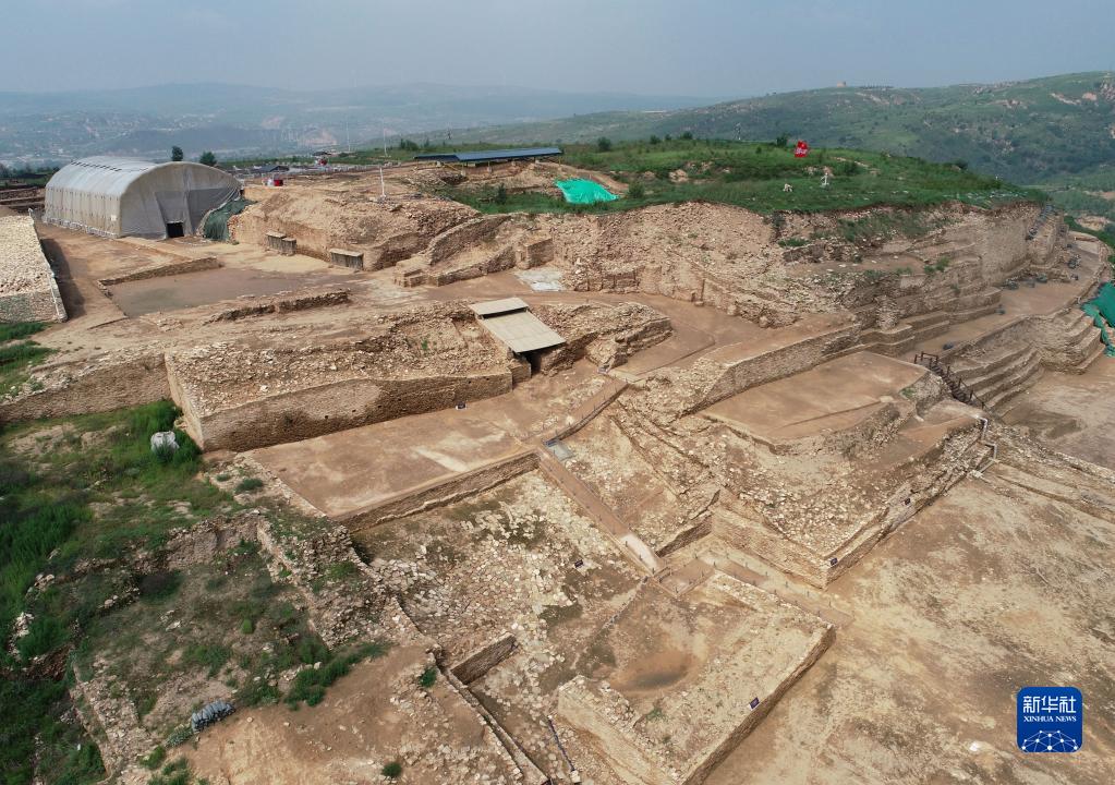 這是8月6日拍攝的陜西神木石峁遺址皇城臺(無(wú)人機照片)。