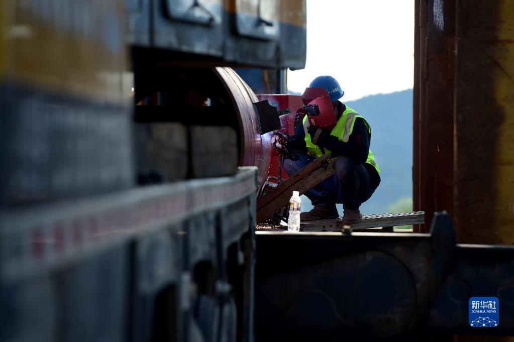 8月6日,工人在中鐵十一局池黃鐵路云山特大橋工地進(jìn)行焊接作業(yè)。