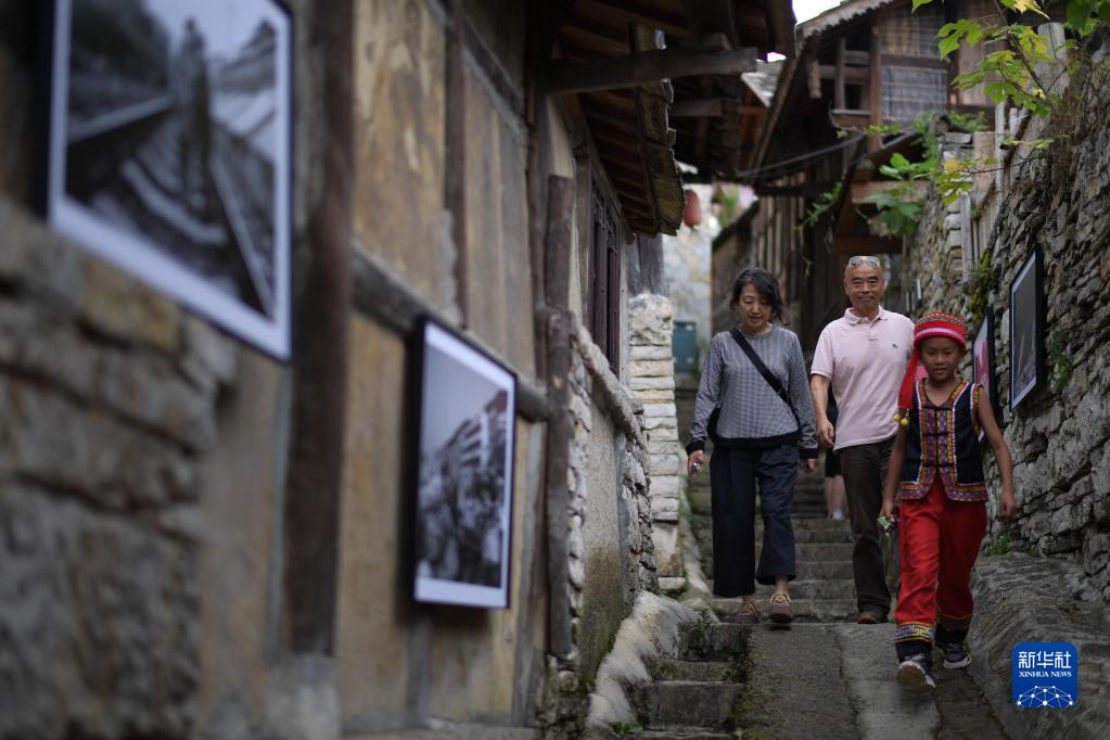 8月6日,人們在貴陽(yáng)市花溪區石板鎮鎮山村“鎮山國際影像周”影展上觀(guān)展。