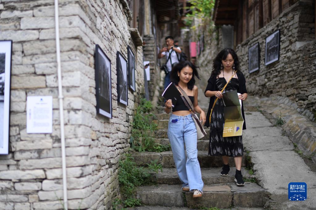 8月6日,游客走在貴陽(yáng)市花溪區石板鎮鎮山村“鎮山國際影像周”觀(guān)展的路上。