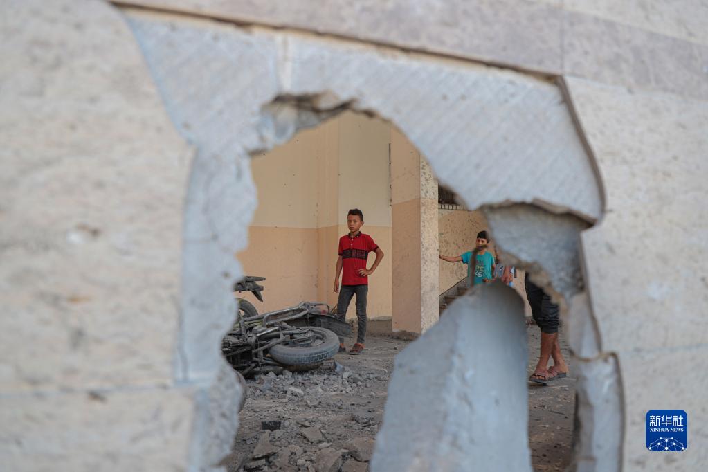 8月6日,加沙城遭遇空襲后,人們查看損毀的樓房。