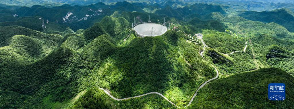 “中國天眼”全景(無(wú)人機照片,2022年7月22日維護保養期間拍攝)。