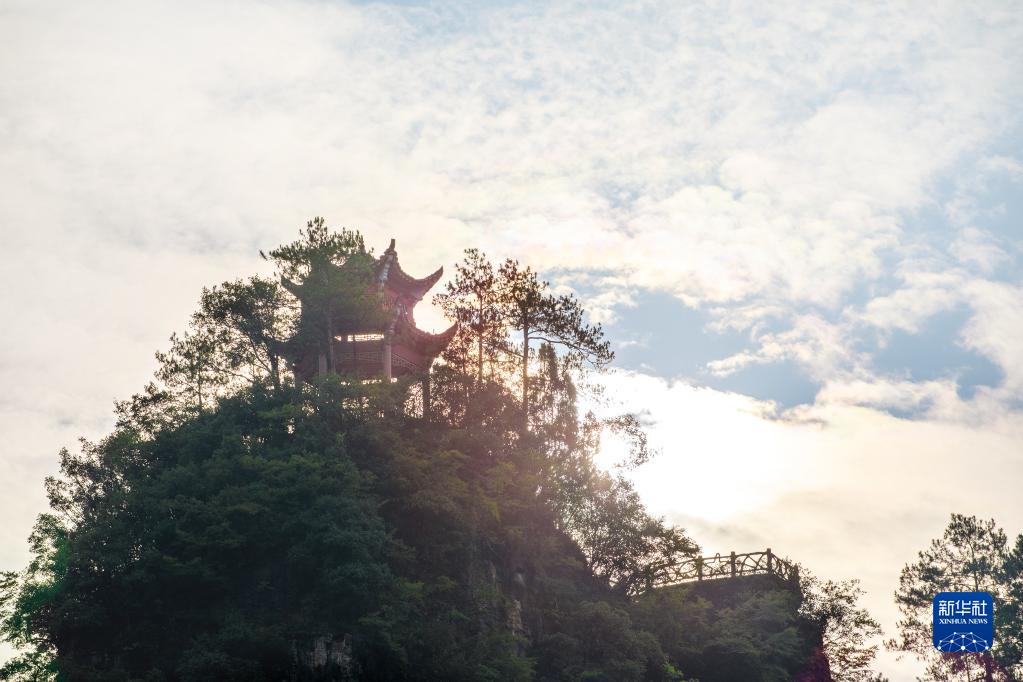 8月7日,朝陽(yáng)照在云臺山山林間(無(wú)人機照片)。