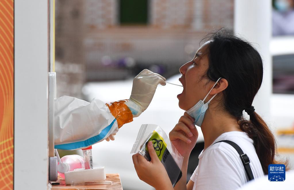 8月7日,居民在??谑旋埲A區萬(wàn)象城采樣點(diǎn)進(jìn)行核酸檢測。
