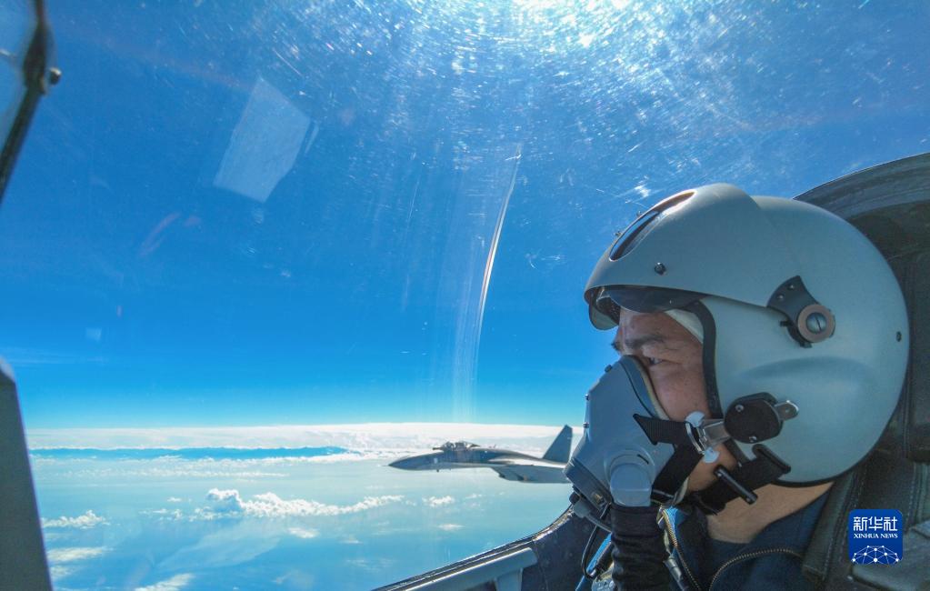 8月7日,中國人民解放軍東部戰區按計劃,繼續在臺島周邊??沼蜻M(jìn)行實(shí)戰化聯(lián)合演訓。這是戰機正在進(jìn)行編隊飛行。新華社發(fā)(王新潮 攝)