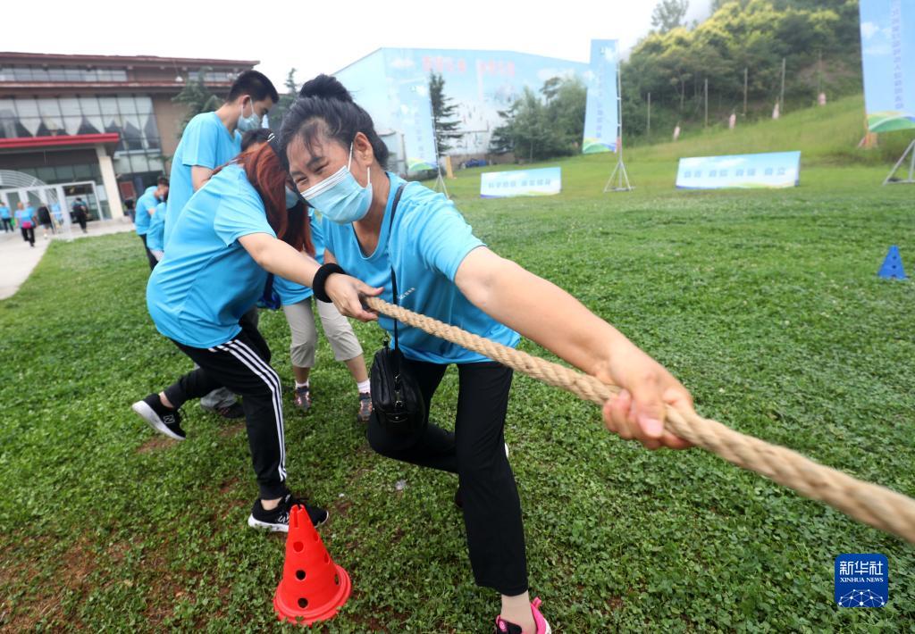 8月7日,在河北省石家莊市鹿泉區西部長(cháng)青景區,人們進(jìn)行拔河比賽。