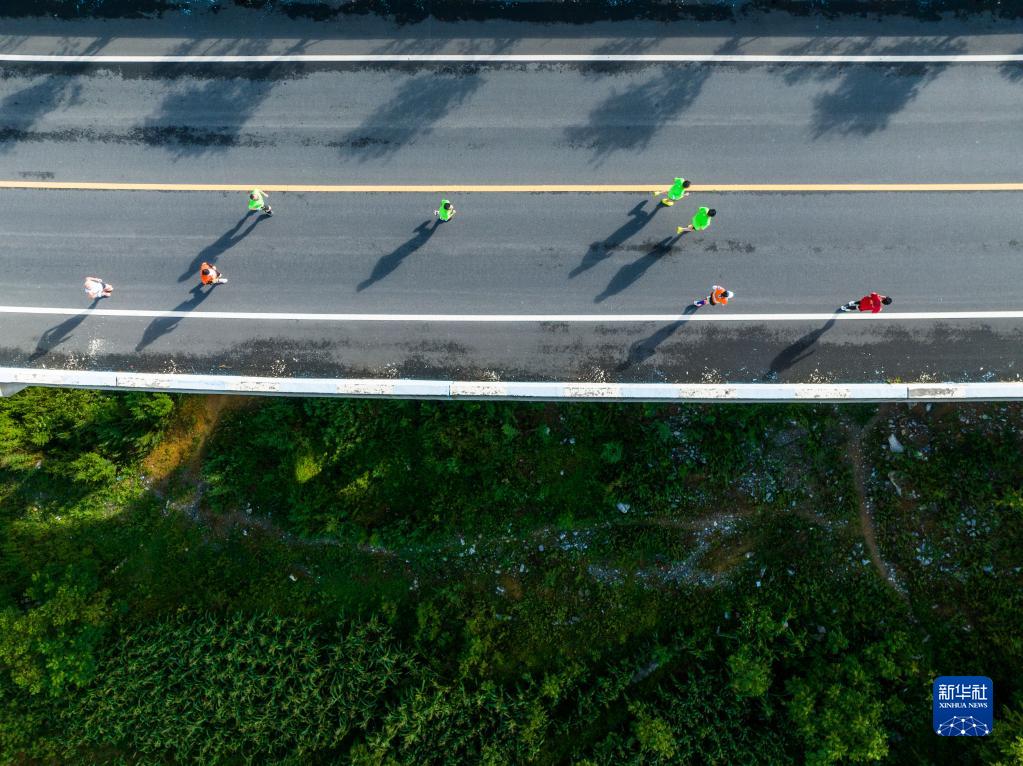 8月7日,運動(dòng)愛(ài)好者在貴州省畢節市百里杜鵑管理區參加山地生態(tài)跑活動(dòng)(無(wú)人機照片)。