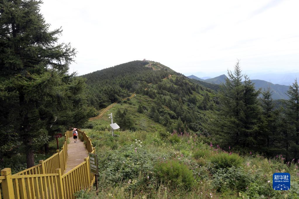 8月8日,游客在灤平縣白草洼國家森林公園休閑游玩。