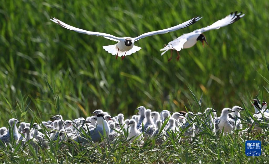 紅堿淖國家級自然保護區鳥(niǎo)島上飛翔的遺鷗(2022年6月22日攝)。神木市每年對紅堿淖湖心島遺鷗生存環(huán)境進(jìn)行修復治理,實(shí)行24小時(shí)信息化監控等多項保護措施,來(lái)此繁殖的遺鷗種群數量逐年增加。