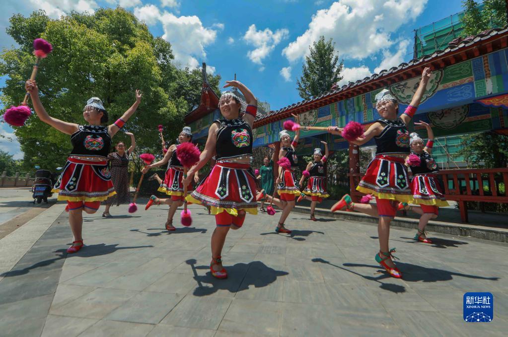 8月8日,健身愛(ài)好者在貴州省黔東南苗族侗族自治州岑鞏縣河濱公園練習“金錢(qián)棍”。