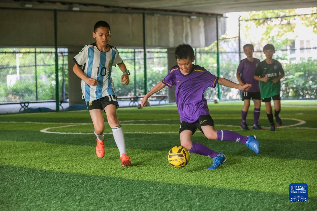 8月8日,小學(xué)生們在南京市六合區雄州街道進(jìn)行足球比賽。