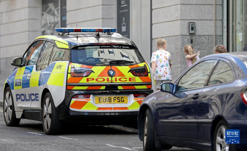 8月8日,幾名兒童從英國倫敦街頭的警車(chē)旁走過(guò)。