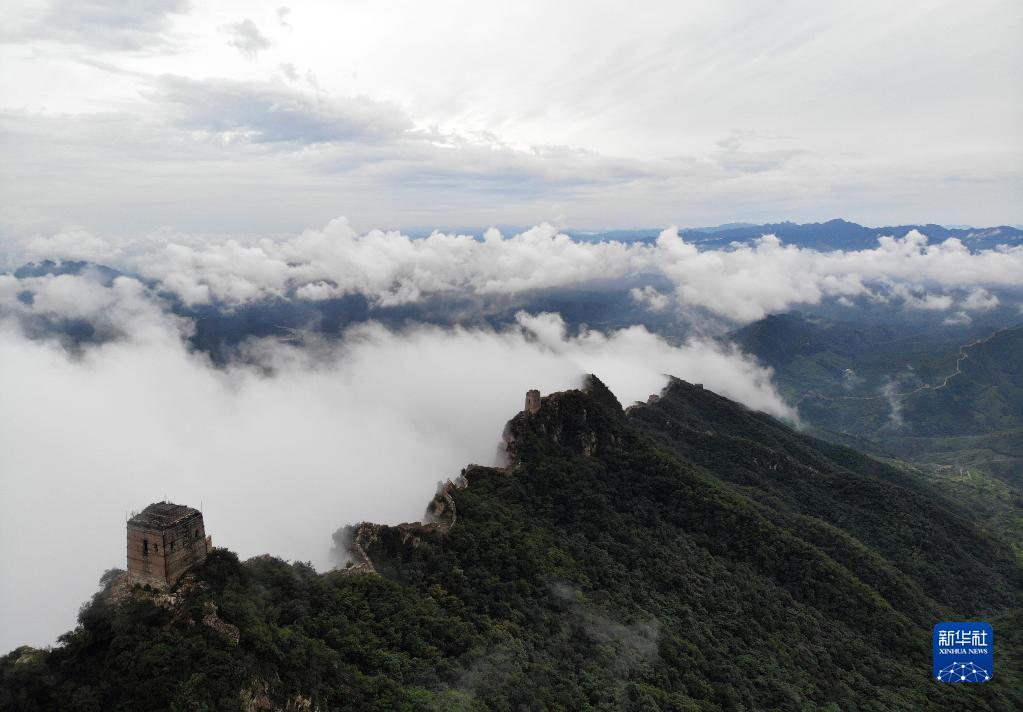 8月9日拍攝的金山嶺長(cháng)城云海景觀(guān)(無(wú)人機照片)。