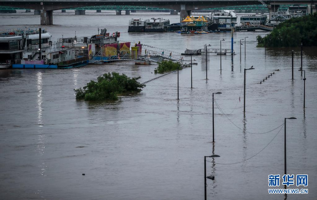 這是8月9日在韓國首爾拍攝的被水淹沒(méi)的汝矣島漢江公園。