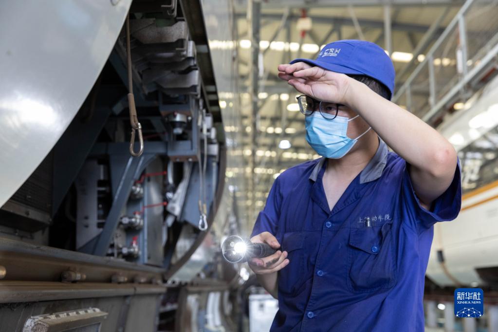 8月10日,動(dòng)車(chē)組機械師張中琪在作業(yè)中擦拭汗水。 新華社記者 王翔 攝