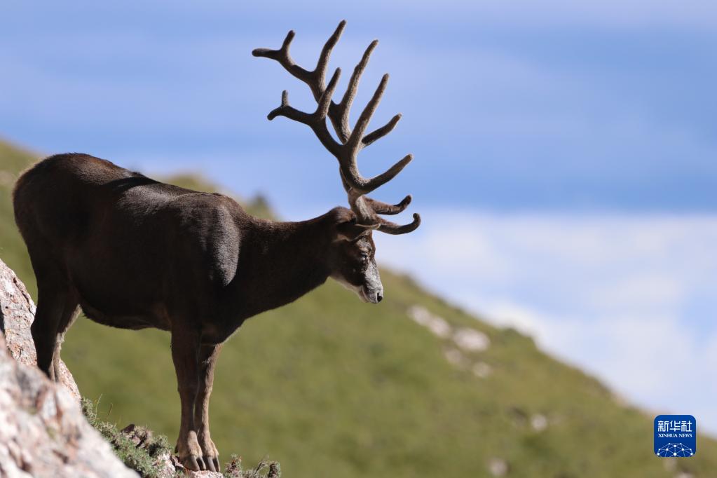 這是在昂賽大峽谷內拍攝的白唇鹿(8月5日攝)。
