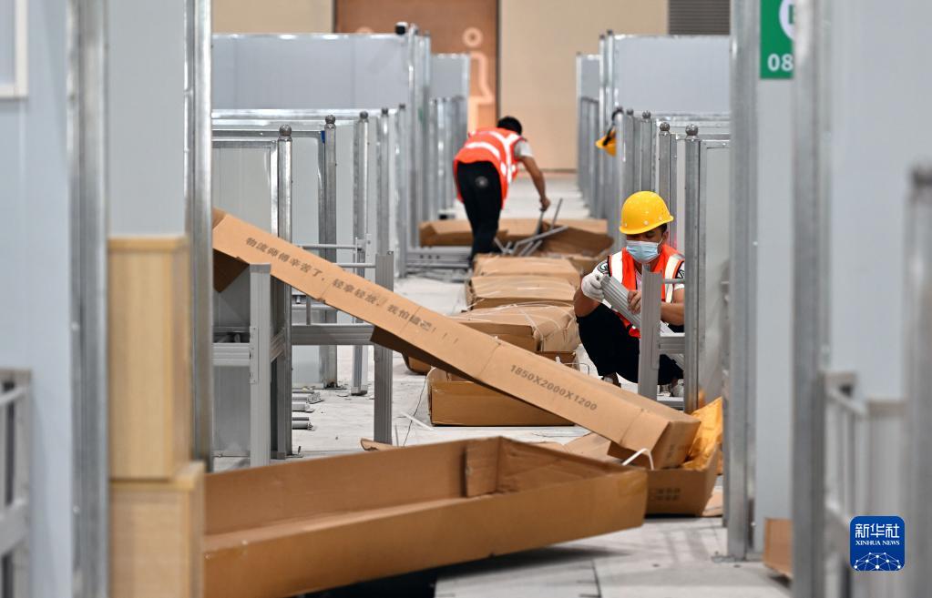 8月10日,工人在三亞第二方艙醫院作業(yè)。