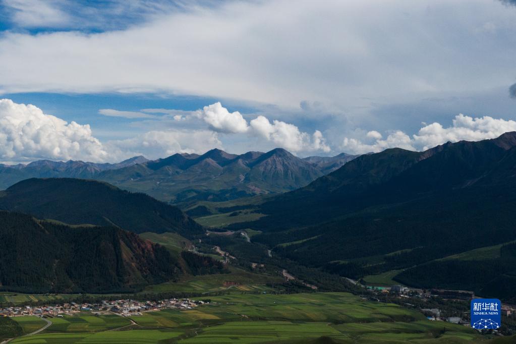 青海省海北藏族自治州祁連縣風(fēng)光(8月10日攝,無(wú)人機照片)。