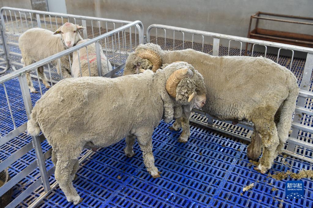 這是8月6日在新疆綿羊分子育種試驗基地拍攝的基因編輯的短尾細毛羊(左)和野生型長(cháng)尾細毛羊。新華社記者 丁磊 攝